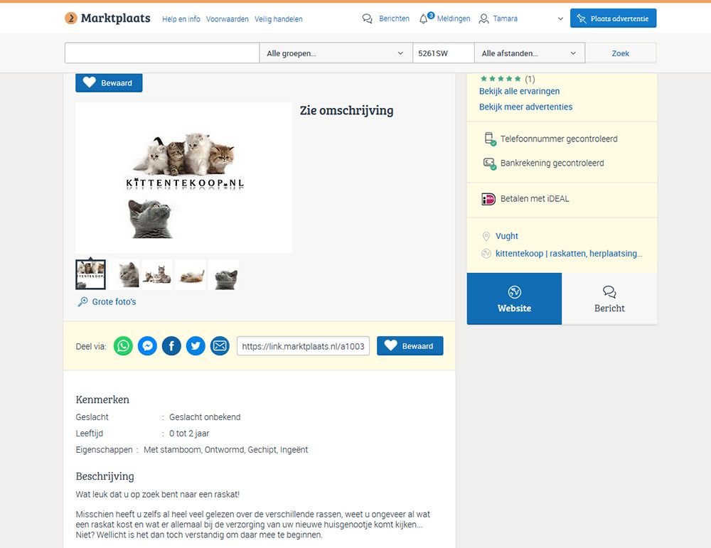 De Marktplaats advertentie van KittenTeKoop